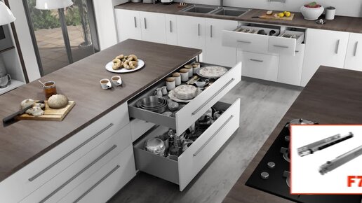 Направляющие F70 от Salice (Италия) скрытого монтажа, полного выдвижения