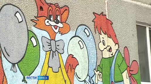 Омский художник украсил свою многоэтажку героями советских мультфильмов