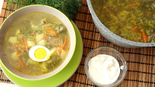 Весенний суп со щавелем и молодой капустой на курином бульоне