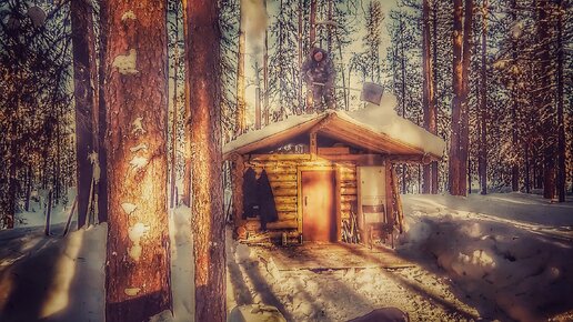 Избу завалило СНЕГОМ. На избушке Чистим с крыши снег и устанавливаем подпорки под навес.