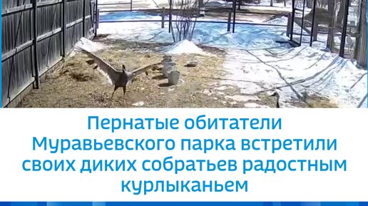 Пернатые обитатели Муравьевского парка встретили своих диких собратьев радостным курлыканьем