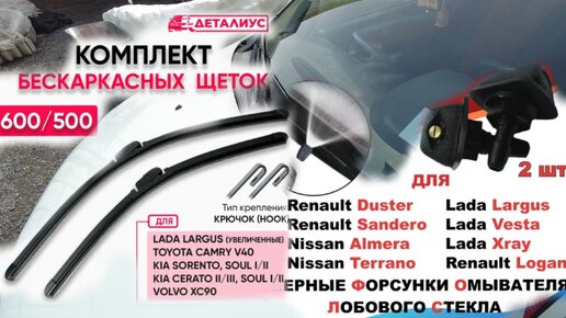 Щётки стеклоочистителя Деталиус. Веерные форсунки омывателя от Машиниус.