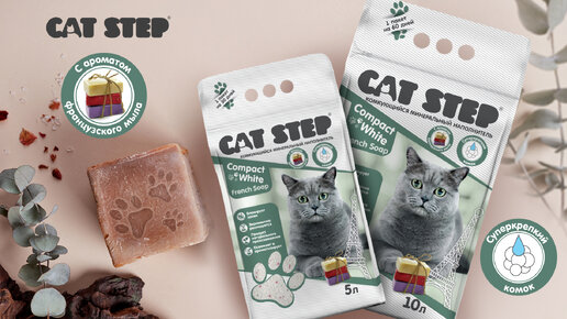 Наполнитель комкующийся минеральный CAT STEP Compact White French Soap
