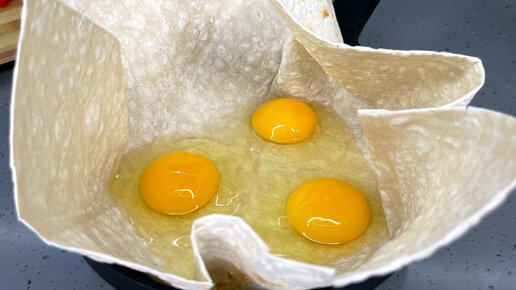 Яйца вылила на лаваш + то, что нашла в холодильнике. Вкусный "лентяйский" завтрак всего за 8-10 минут