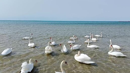 Море Анапа лебеди. 3 апреля.