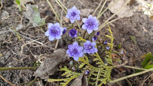 Синяя махровая печеночница плена зацвела первой в этом 2024 году.