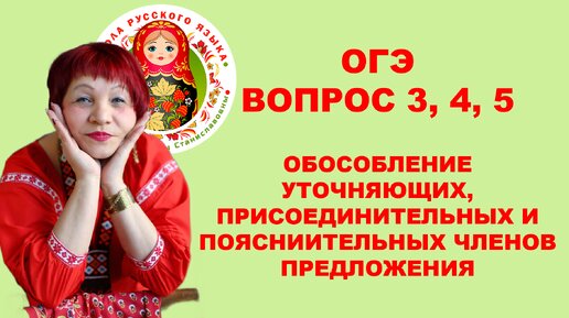 ОГЭ. Вопрос 3, 4, 5. Уточняющие, пояснительные и присоединительные члены предложения.
