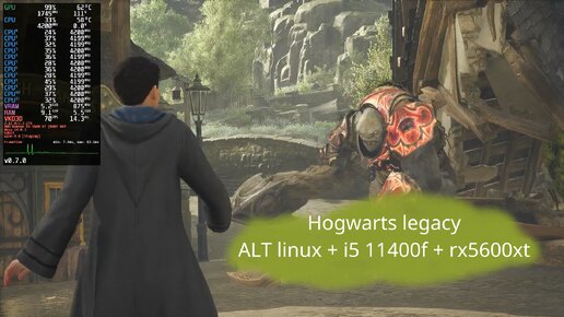 Hogwarts legacy на ALT linux + i5 11400f + rx5600xt