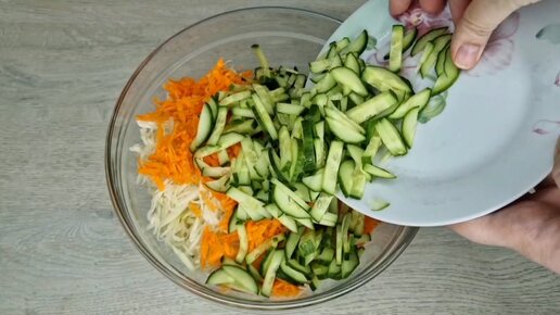 Остаток капусты после приготовления борща больше не выкидываю, просто добавляю к ней огурец и получается вкуснейший салат