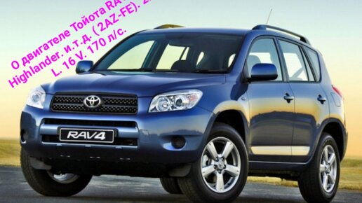 О двигателе Тойота RAV 4 . Higlander . И.т.д. ( 2 АZ -FE ) 2.4 L. 16V. 170 л/с.