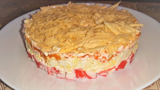Отличное блюдо для приема гостей и для семьи. Салат с крабовыми палочками и сыром, быстро и вкусно