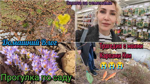 Домашний Влог. Погибли рыбки в пруду. Весна в Подмосковье.Прогулка по саду. Розы, хвойные.
