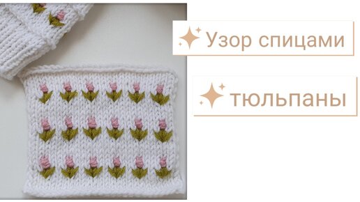Красивый и не сложный узор спицами. Тюльпаны🌷🌷🌷