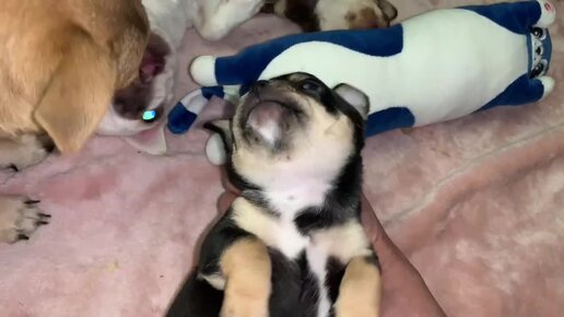 Какой у щеночков сейчас милый возраст, хоть целый день с ними играй.