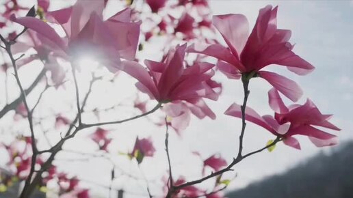 В Красной Поляне распустилась прекрасная магнолия Суланжа, и это великолепие особенно подчеркивает фон заснеженных гор.