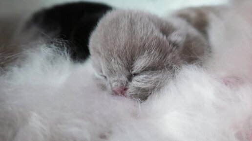 Недельные котята наслаждаются маминой любовью, лиловый и черный котенок