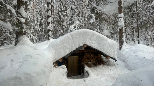 ЗЕМЛЯНКА УТОНУЛА В СНЕГУ! СОЗДАЮ УЮТ ВНУТРИ. СДЕЛАЛ ВТОРУЮ ОТКИДНУЮ КРОВАТЬ