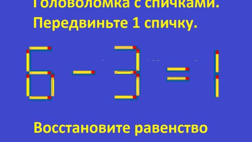 Головоломки с спичками. Исправьте выражения 6 - 3 = 1 и 2 - 4 = 8, переместив 1 спичку