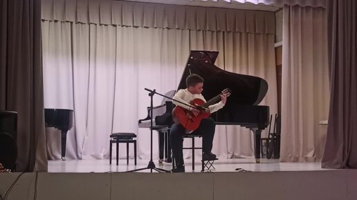 Сын моей подруги играет на гитаре.