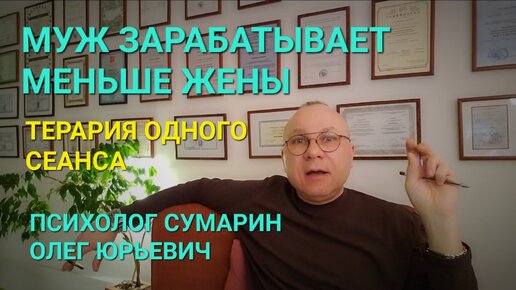 МУЖ ЗАРАБАТЫВАЕТ МЕНЬШЕ ЖЕНЫ. ТЕРАПИЯ ОДНОГО СЕАНСА. ПСИХОЛОГ СУМАРИН ОЛЕГ ЮРЬЕВИЧ
