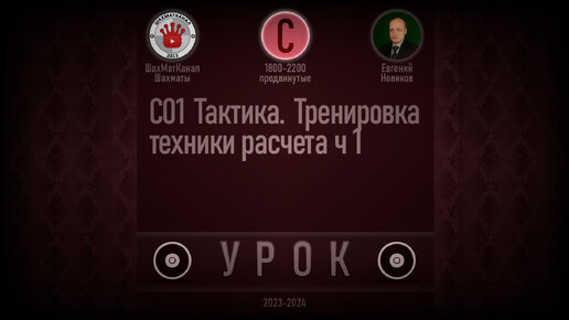 Далее: УРОК C02 Тактика. Тренировка техники расчета ч 2. Шахматы Обучение