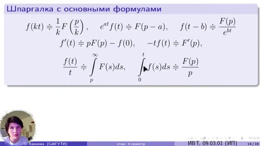 Основные свойства преобразования Лапласа (лекция 2, 2024)