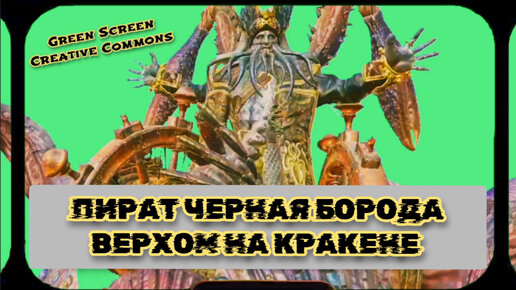 ПИРАТ ЧЕРНАЯ БОРОДА ВЕРХОМ НА КРАКЕНЕ видео Green Screen футаж. ХРОМАКЕЙ АНИМАЦИЯ на зелёном фоне.