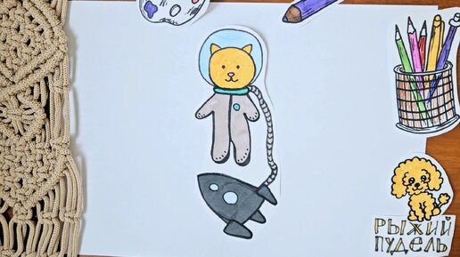 Как нарисовать кошечку космонавта и ракету / Поэтапный и понятный урок рисования для детей