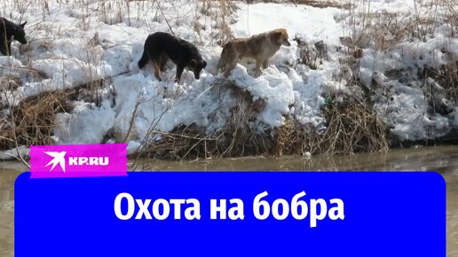 Бобр дразнит собак, устроивших на него охоту