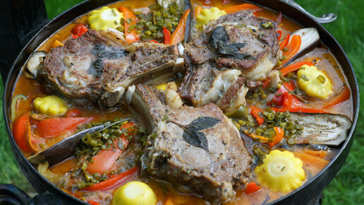 Мясо «Говяжьи Пистолеты» с овощами на огне в САДЖЕ.