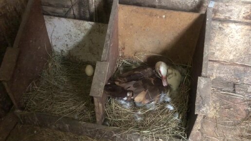 Утка готовится стать матерью. Обложилась пухом и уселась на яйца.