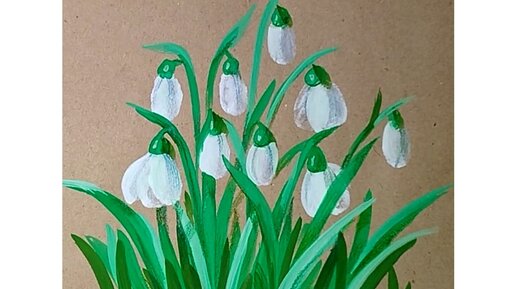 Рисуем подснежники подушечками пальцев и кистью, и карандашом.