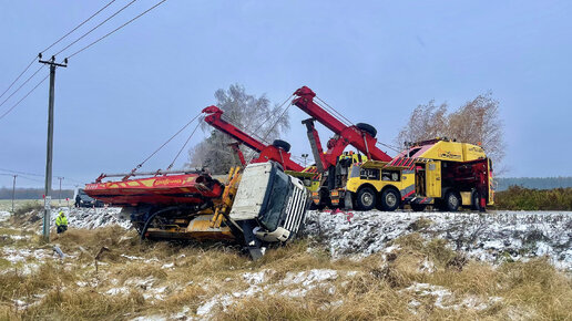 УХОДИЛ ОТ СТОЛКНОВЕНИЯ - Подъем из кювета 3-х осного БЕТОНОНАСОСА массой 25 тонн