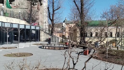 "Горка" - небольшой, но уютный парк в исторической части Москвы, недалеко от метро "Китай-город". Проклюнулись первые листики на деревьях.