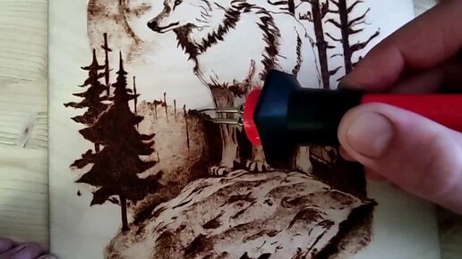 Завершено волк на камне выжигание по дереву
