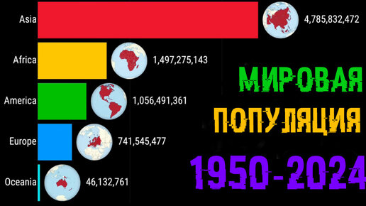 Мировая популяция людей по частям света (1950 - 2024)