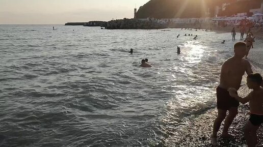 Ольгинка Туапсинский район. Пляж Русское Море. Немного штормит, но все купаются.