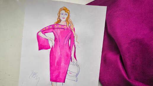 Придумала очередное платье для Людмилы Николаевны из замши цвета баклажан.