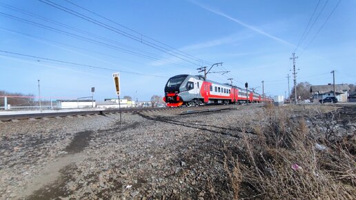 Новый электропоезд ЭП2ДМ-0244 отправляется с о.п. Совхоз Бердский
