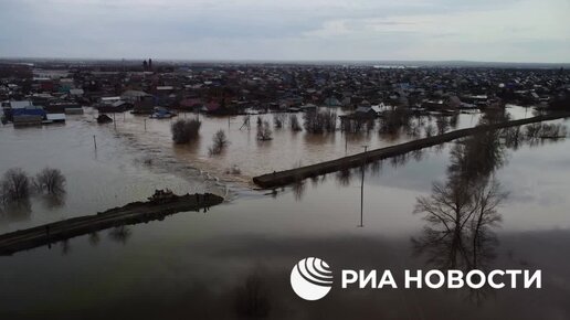 Вид на прорвавшуюся дамбу 6.04.2024. Половина старого города под водой
