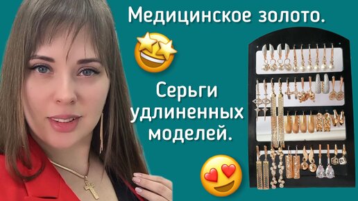 Серьги. Медицинское золото. Удлиненные модели. Пластины, Плети, Камни.