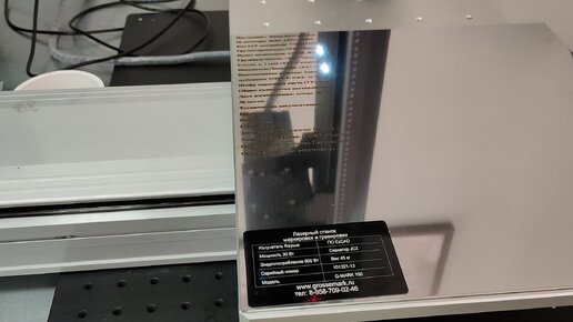 Маркировка таблички на автостоле перемещения 400 мм. Лазерный маркер G-MARK