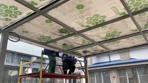 Прозрачная кровля , навс из монолитного поликарбоната .