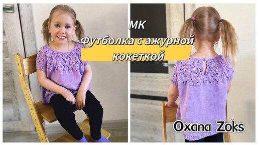 МК/Футболка с круглой ажурной кокеткой спицами/Блуза спицами/Alize cotton gold/Oxana Zoks