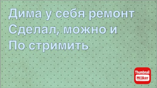 Всё в кучу. Дима у себя ремонт сделал , можно и по стримить