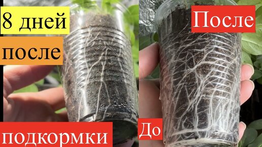 8 дней после подкормки кальциевой селитрой. Корни кольцами! Рассаду не узнать!