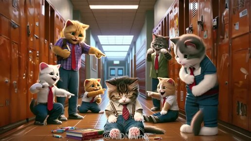 Котенка обижают в школе 😿 Грустная история, кот, нейросеть