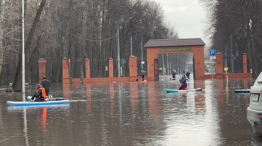 В Рязани горожане передвигаются на лодках и сапах по затопленному Лесопарку