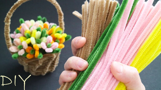 МИЛАЯ КОРЗИНКА С ЦВЕТАМИ из синельной проволоки