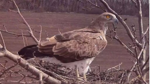 Это мало кто видел! Встреча четы змееядов на родном гнезде.